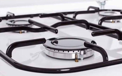 Una gruesa capa de depósitos de carbón se forma gradualmente en la rejilla de una cocina de gas, que no…