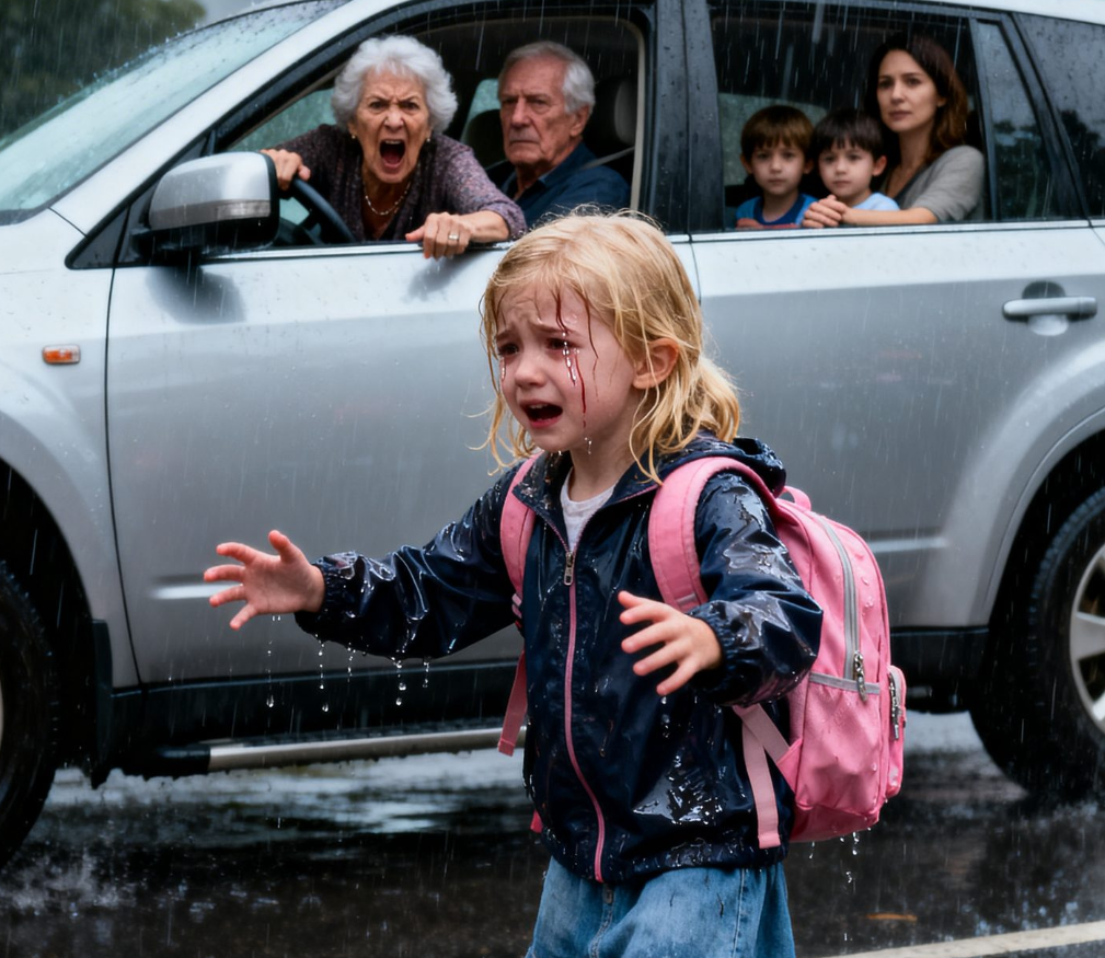 Al llegar al estacionamiento, la vi de inmediato. La señora Patterson la protegía con un paraguas, intentando resguardarla del aguacero. La mochila rosa de Lily colgaba, empapada y pesada. Su cabello rubio se le pegaba a las mejillas. Sus hombros temblaban como si el frío se le hubiera calado hasta los huesos.