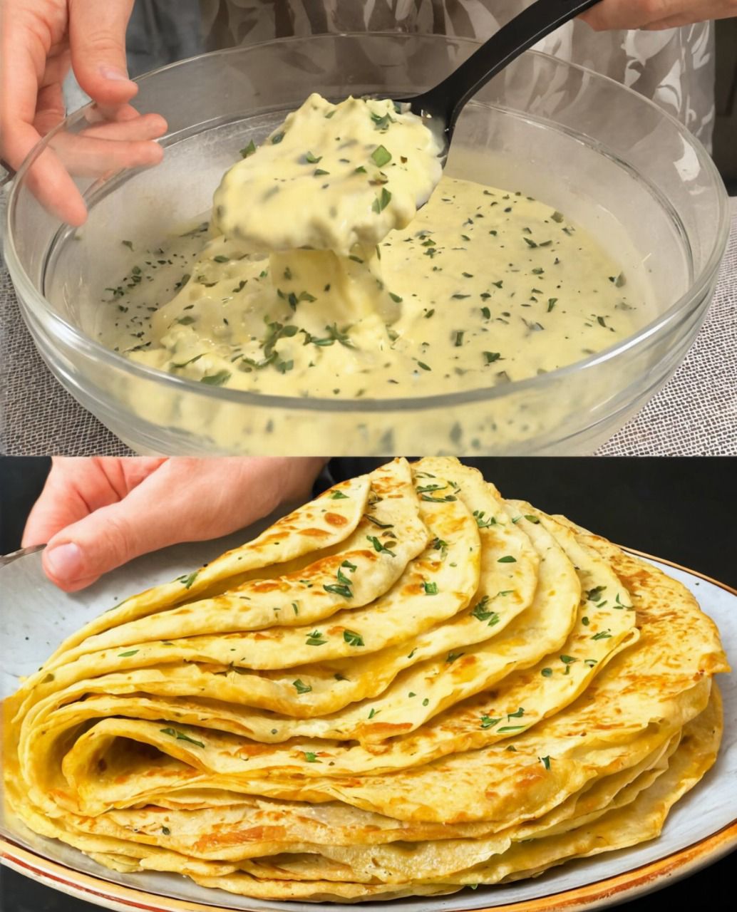🧄🥞 Crepas de Sartén con Salsa Cremosa de Ajo y Hierbas